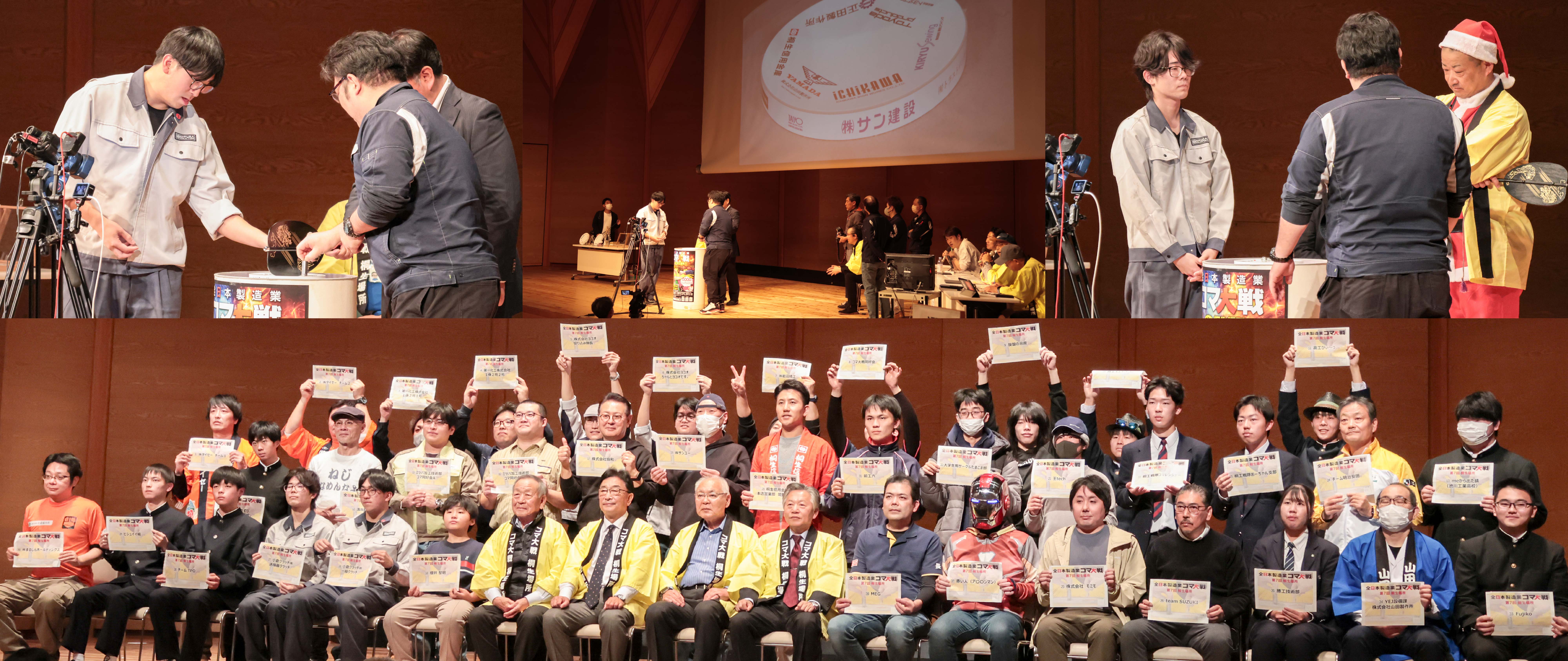 12月6日、美喜仁桐生文化会館(桐生市民文化会館)小ホールにて、「全日本製造業コマ大戦 第7回桐生場所」が開催されました。地元高校生や県内外の企業など、計38チームが参加し、弊社からは輸送機器クラッチチームと一般クラッチチームの2チームが出場しました。